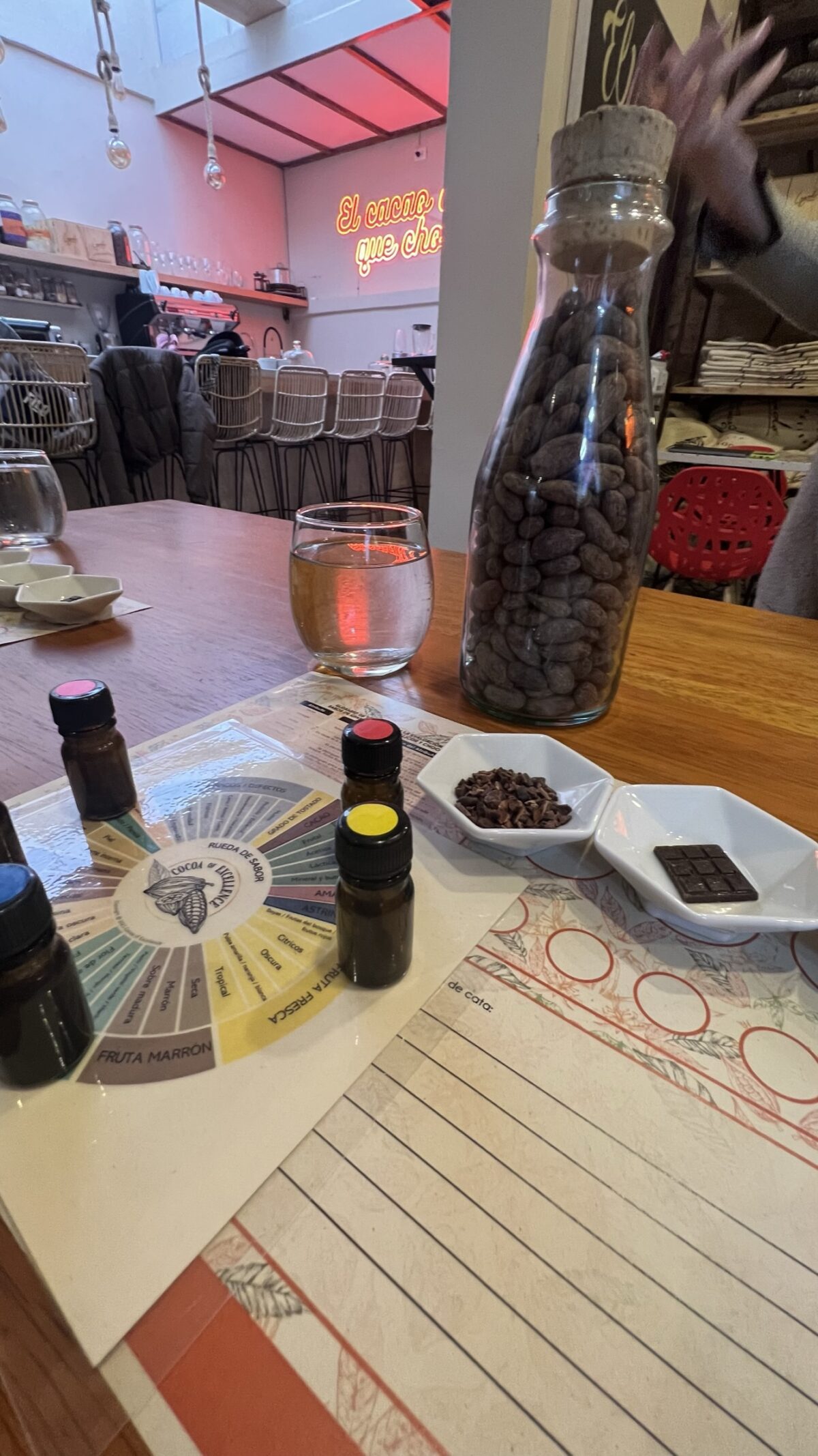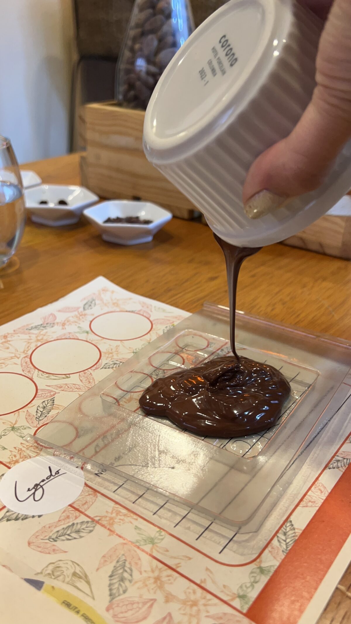 El chocolate es delicioso y puedes hacer tu propia barra! Además hay un momento de cata para entender los sabores, aromas e historia del cacao!! ESTUVO GENIAL!