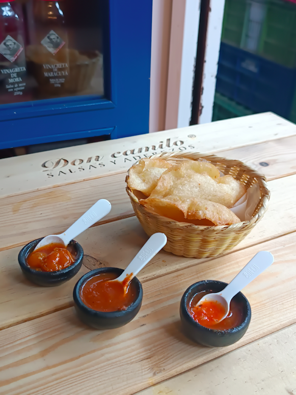 • Degustación de bocados de cocina popular colombiana (street food): 2 bebidas, 2 bocados de sal y postre.
